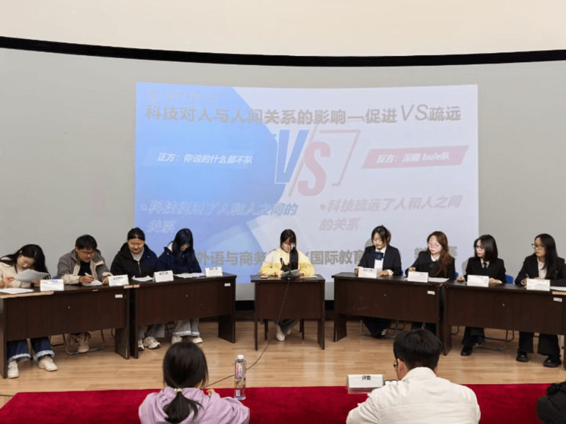 为丰富我院学生的文化生活,锻炼思辨与协作能力,引导理性认知科技与人际关系的关联,近日,外语与商务学院(国际教育学院)党团工作站举办“科技对人与人间关系的影响是促进还是疏远”辩论赛决赛在大同楼圆满落幕。党团工作站学生干部、各班级学生代表百余人到场观摩。