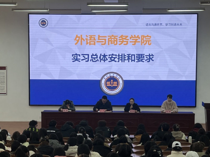 12月10日下午,外语与商务学院(国际教育学院)在大同楼A115召开2026届毕业生实习与就业动员大会。大会旨在全面部署实习工作,强化安全意识与就业指导,引导毕业生顺利完成从校园到社会的过渡。学院党总支副书记陈正、副院长朱秋菊、学工办主任、各专业负责人、毕业班班主任及2023级全体学生出席会议,会议由教育实践办主任主持。